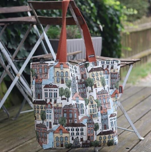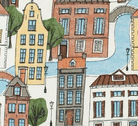 Dekostoff Häuser Landschaft Stadt City (Meterware ab 0,50m) Sommerstoff Deko top