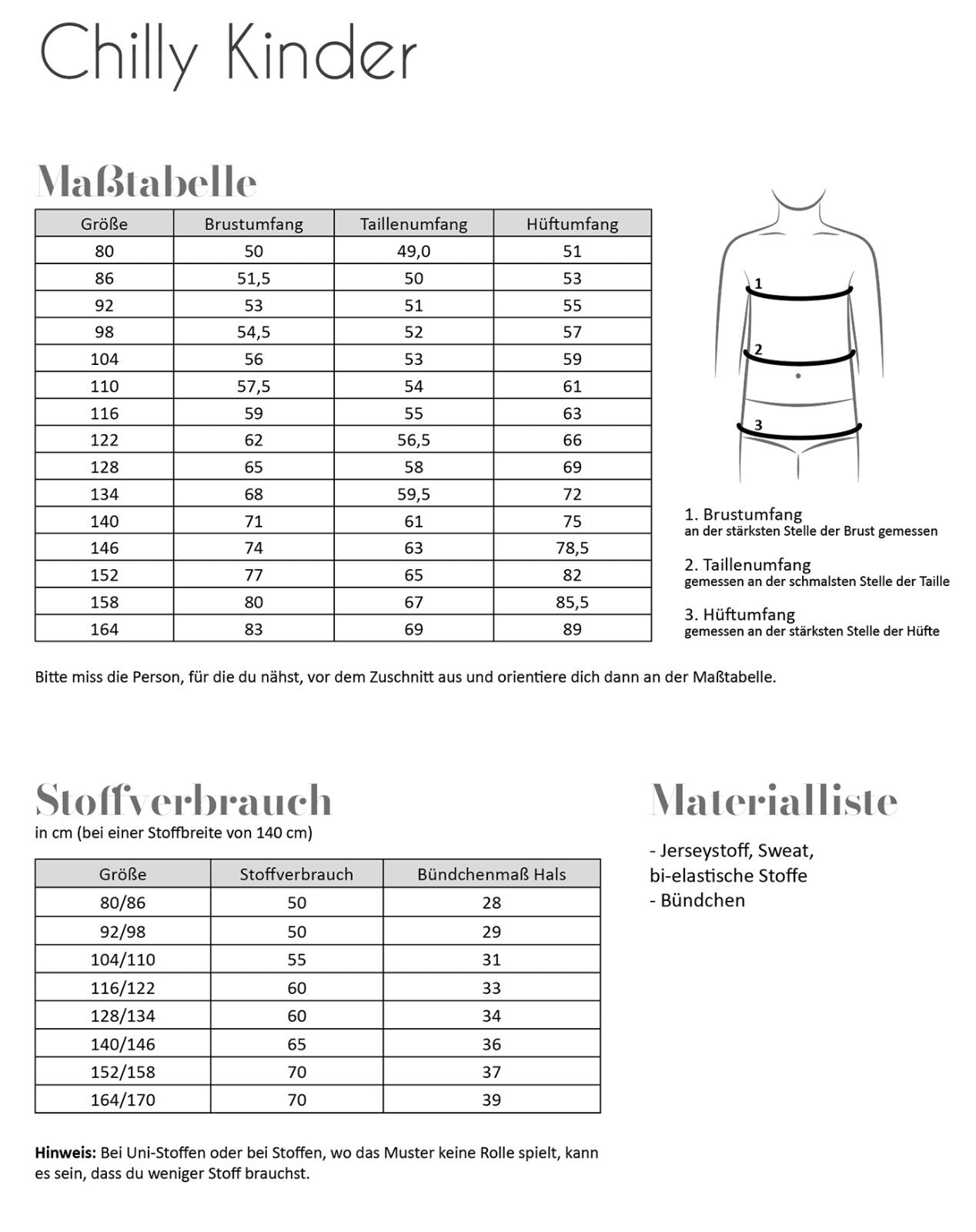 FADENKÄFER Papier Schnittmuster Chilly Kinder Größe 80 bis 164 Neu leicht