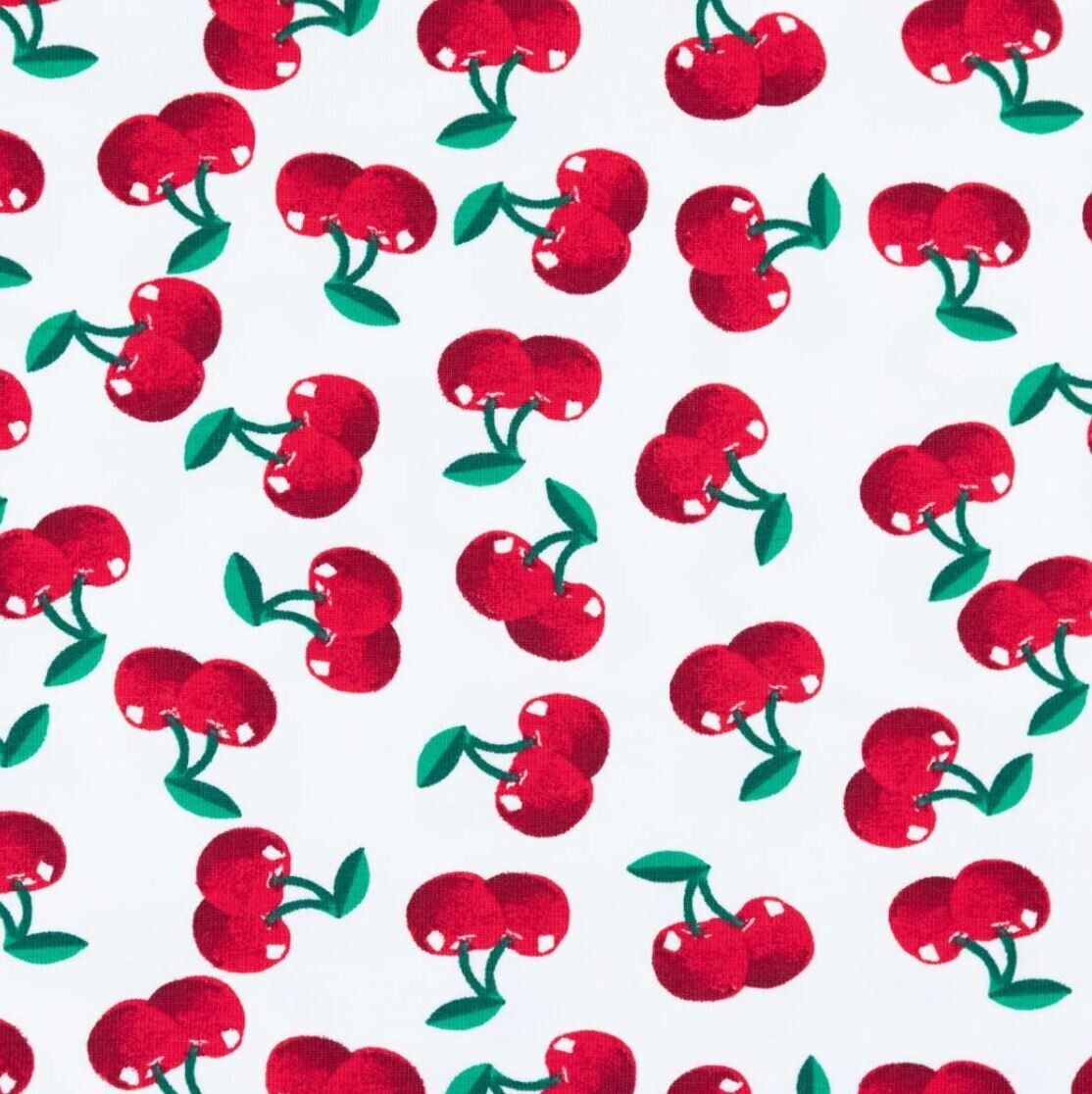 Jersey Stoff Baumwolljersey Stoff Süße Kirschen auf Weiß EUR 13,90/m
