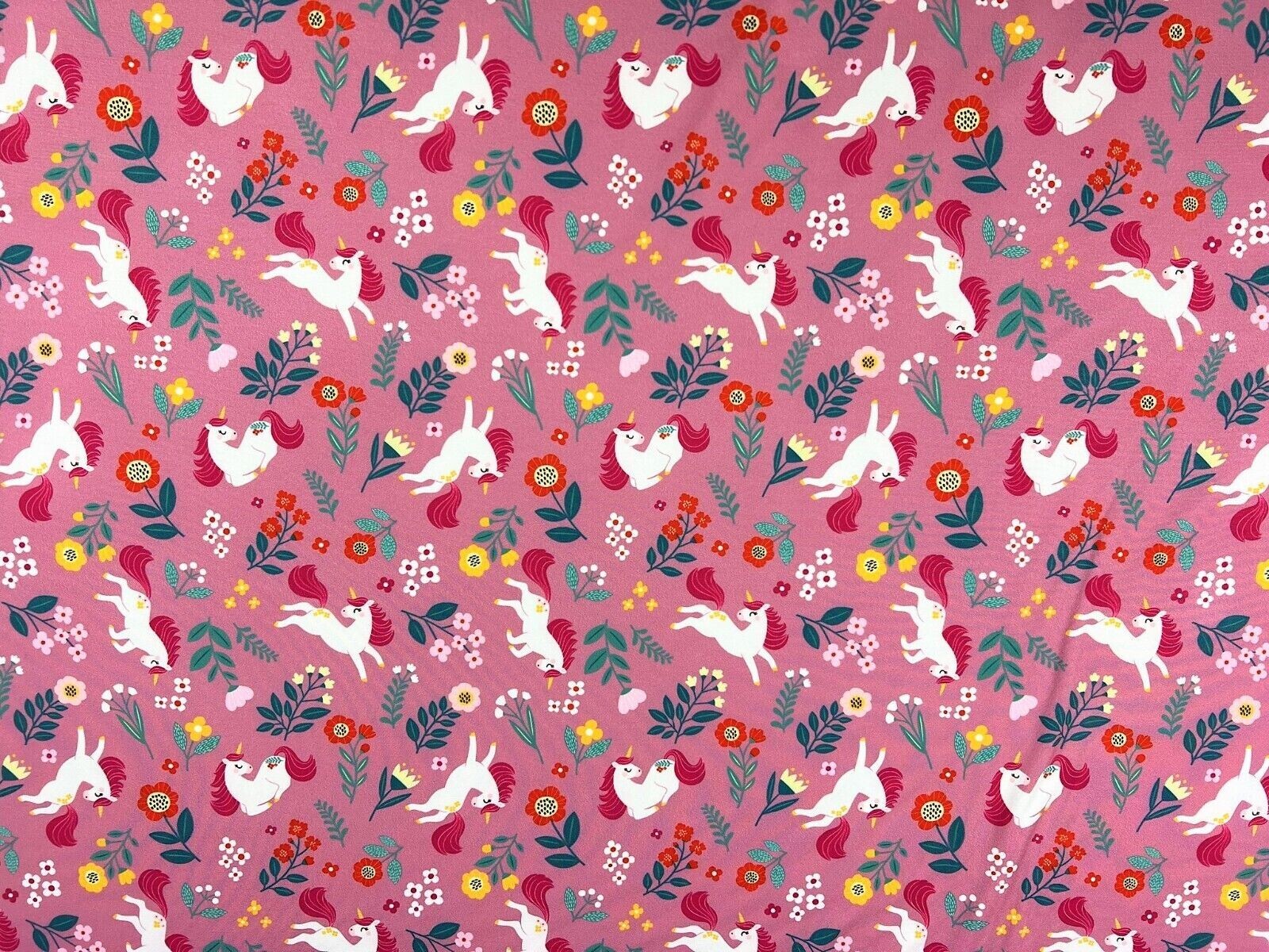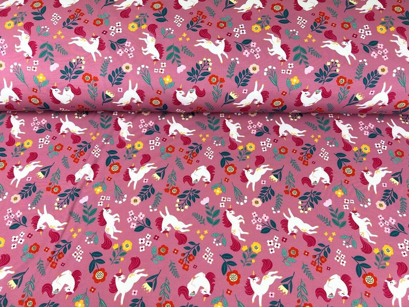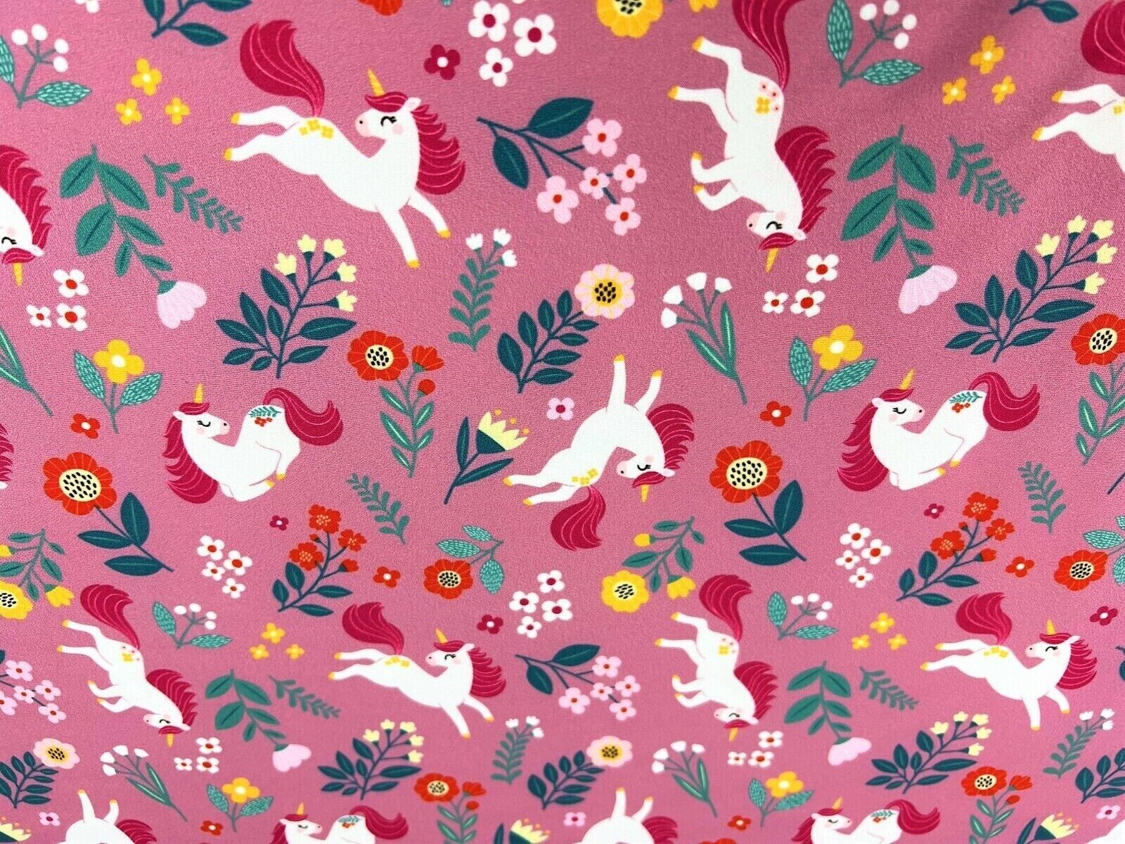 Wunderschöner Softshell Stoff Pferde, Ponys & Blumen rosa bunt